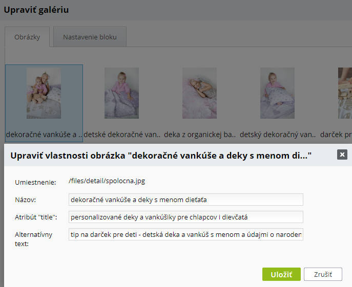 Aj v tomto prípade systém za vás automaticky generuje názov alternatívneho popisku obrázkov a atribútu title podľa NÁZVU dynamického bannera.