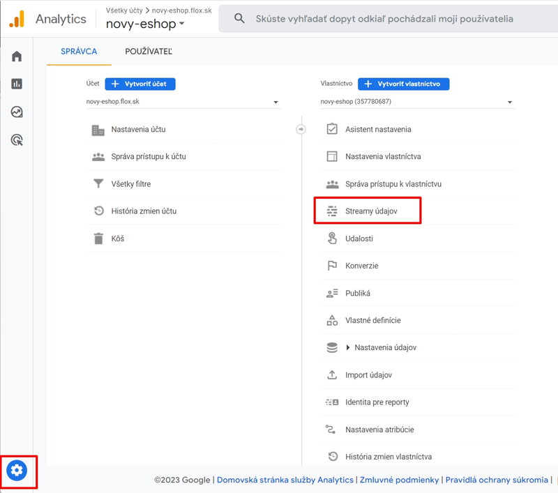 Po prihlásení do Google Analytics kliknite na tlačítko Správca. Kliknite na názov Vlastníctva web stránky, ktorú chcete nastaviť. V stĺpci Služba kliknite na Streamy údajov - vyberte názov streamu - vášho webu. V sekcii Rozšírené meranie posuňte prepínač do polohy Zapnuté, aby ste aktivovali všetky možnosti. Kliknutím na ikonu Nastavenia môžete podľa potreby jednotlivé možnosti upraviť.